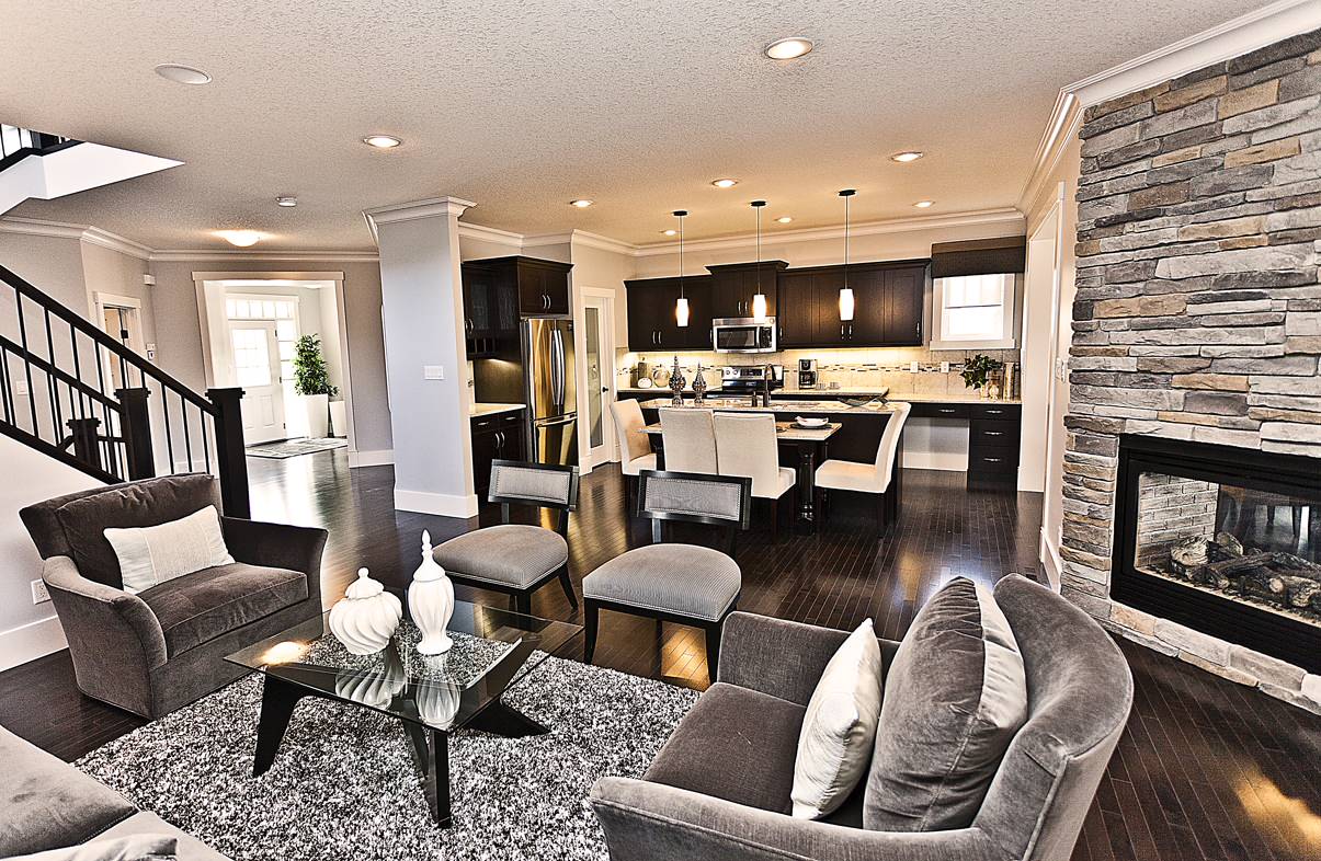 Laid on the floor is a beautiful carpet and the affluent coloring blends the whole room. By removing a wall, what was once a small room feels much larger, offering a comfortable flow between the living room and the dining room. The main focal point of the room is the blue fireplace with its matching side table. The corner fireplace as a backdrop. Therefore, it matches the room interior and other objects you place in that room.